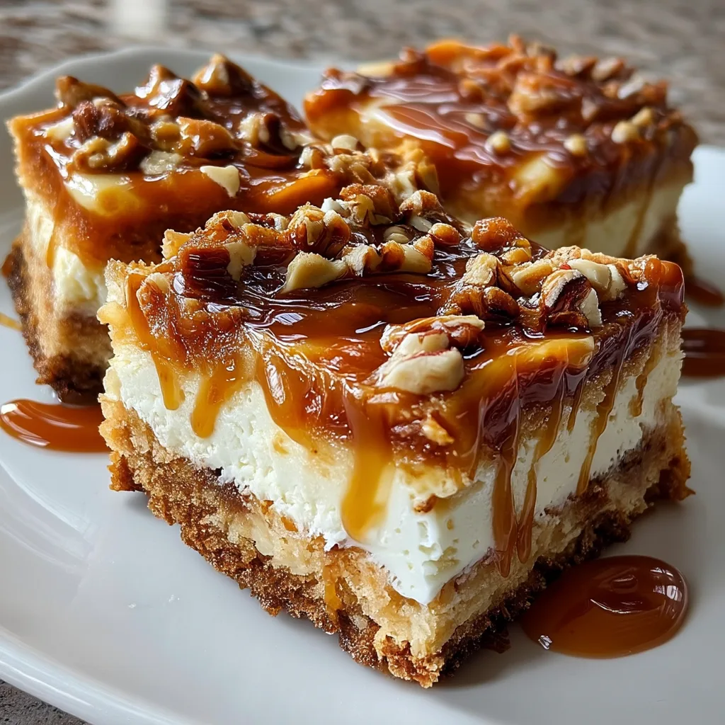 These bars fit perfectly into any celebration — from Sunday suppers to holiday potlucks. You can serve them warm with a scoop of vanilla ice cream (oh yes, the caramel melts beautifully!) or chilled for that firm, cheesecake-like bite.