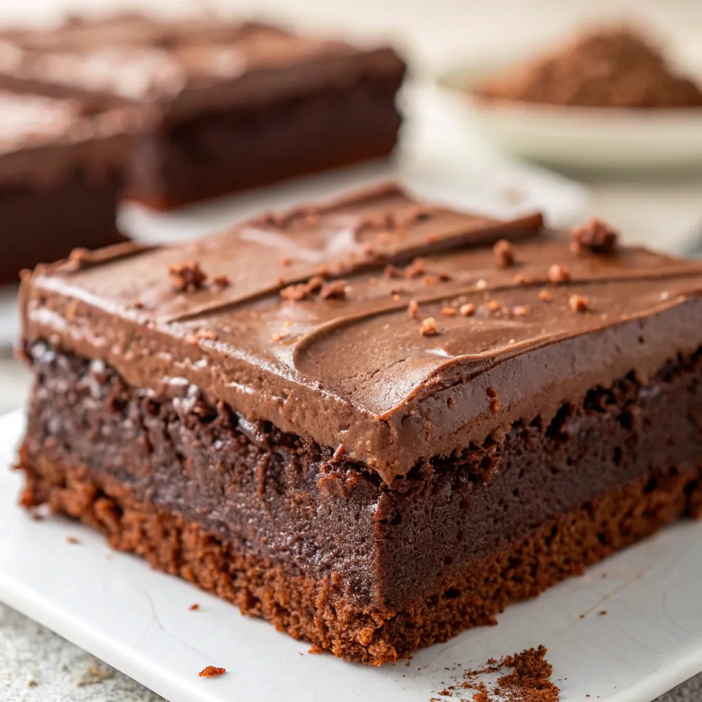 A chocolate sheet cake is a single-layer cake baked in a large rectangular pan (often a 9×13). It’s soft, fluffy yet rich, and usually topped with a glossy chocolate glaze or frosting. It’s the kind of cake that doesn’t need fussing—it’s all about that comforting slice of goodness.