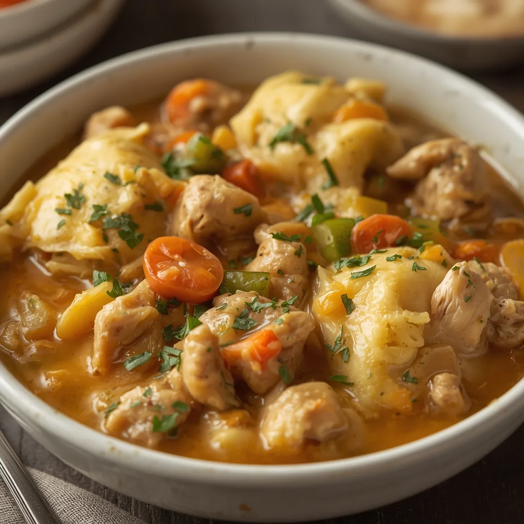 Chicken and dumplings has roots in Southern American cooking, with variations across the country — some regions prefer drop dumplings, others rolled-out biscuit-style. My grandmother made a version with bone-in chicken and thick, biscuit-like dumplings that filled the house with the scent of rosemary and patience. This recipe is my streamlined, practical homage: less fuss, same soul. It’s the kind of dish that sticks in your memory — the soft dumplings become the story you tell your dinner guests.