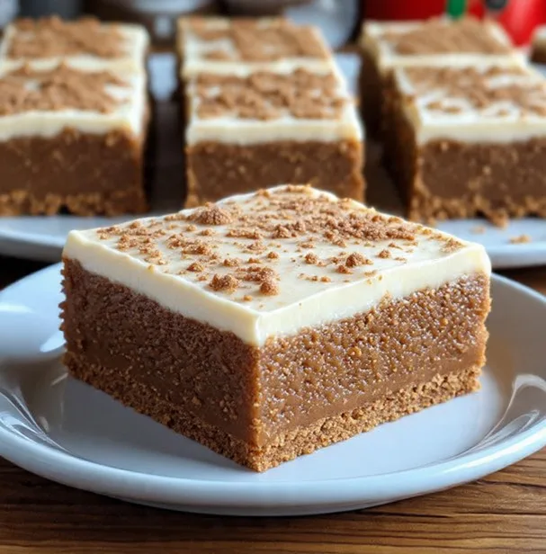 Soft, chewy gingerbread cookie bars topped with rich cream cheese frosting—a cozy holiday treat!