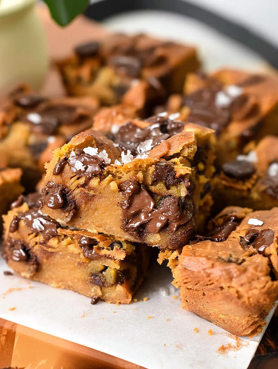 These healthy chickpea blondies are fudgy, soft, naturally gluten-free, vegan, and made without eggs or dairy. A perfect healthy dessert.