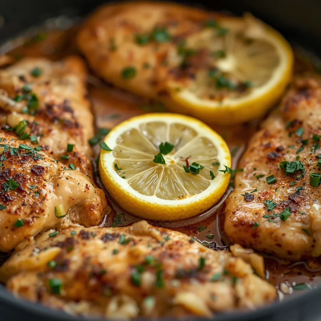 Turn off the heat and let the chicken rest in the skillet for 3–5 minutes. Resting lets the juices redistribute so each bite is tender and juicy. Finish with a drizzle of olive oil or a small pat of butter if you like, and sprinkle lemon zest and parsley for color. Give a final taste and adjust salt or pepper. Serve hot, and breathe in the citrus and garlic bouquet — I swear that smell is the very definition of comfort.