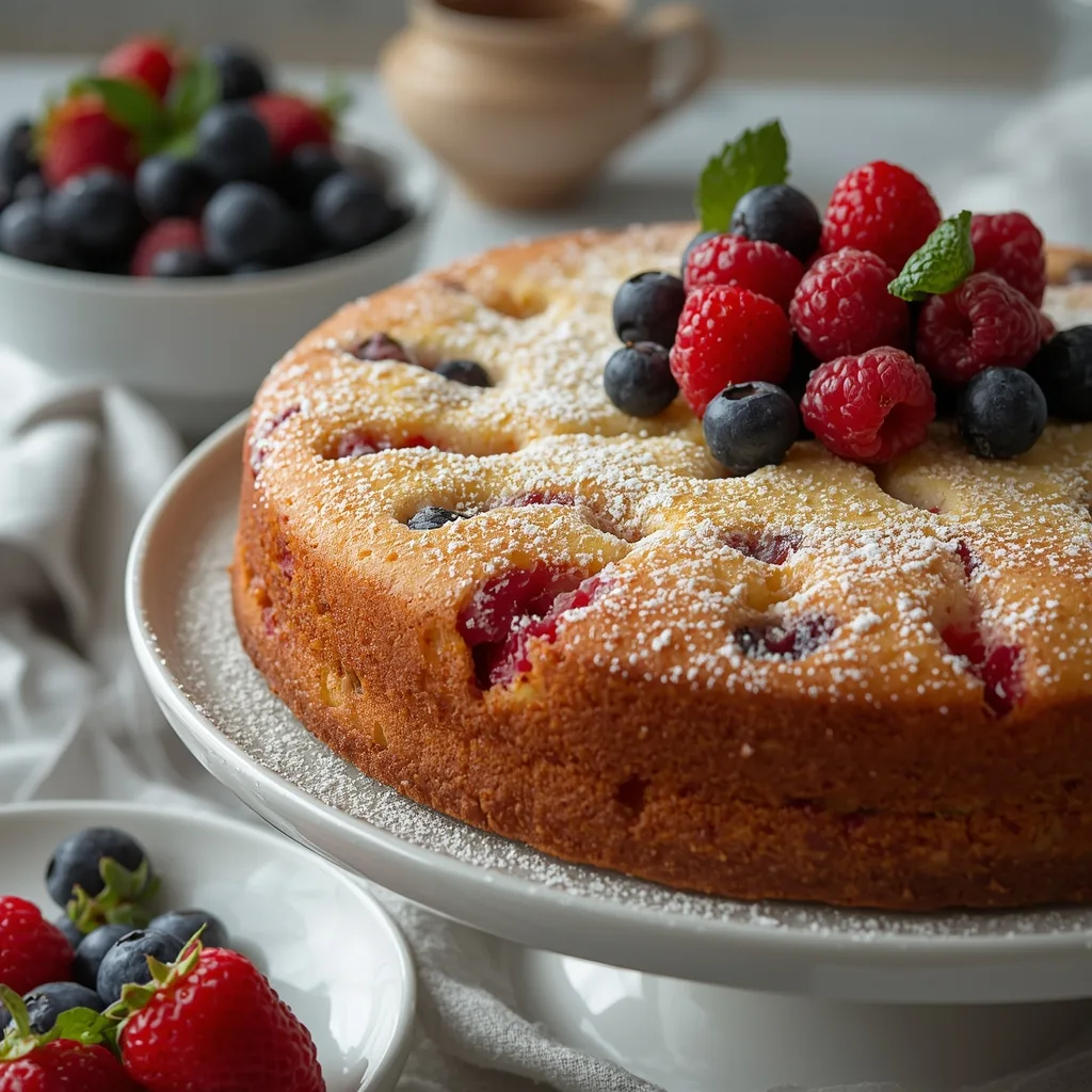 Irresistible Easy Lemon Ricotta Cake with Spring Berries – 10 Servings