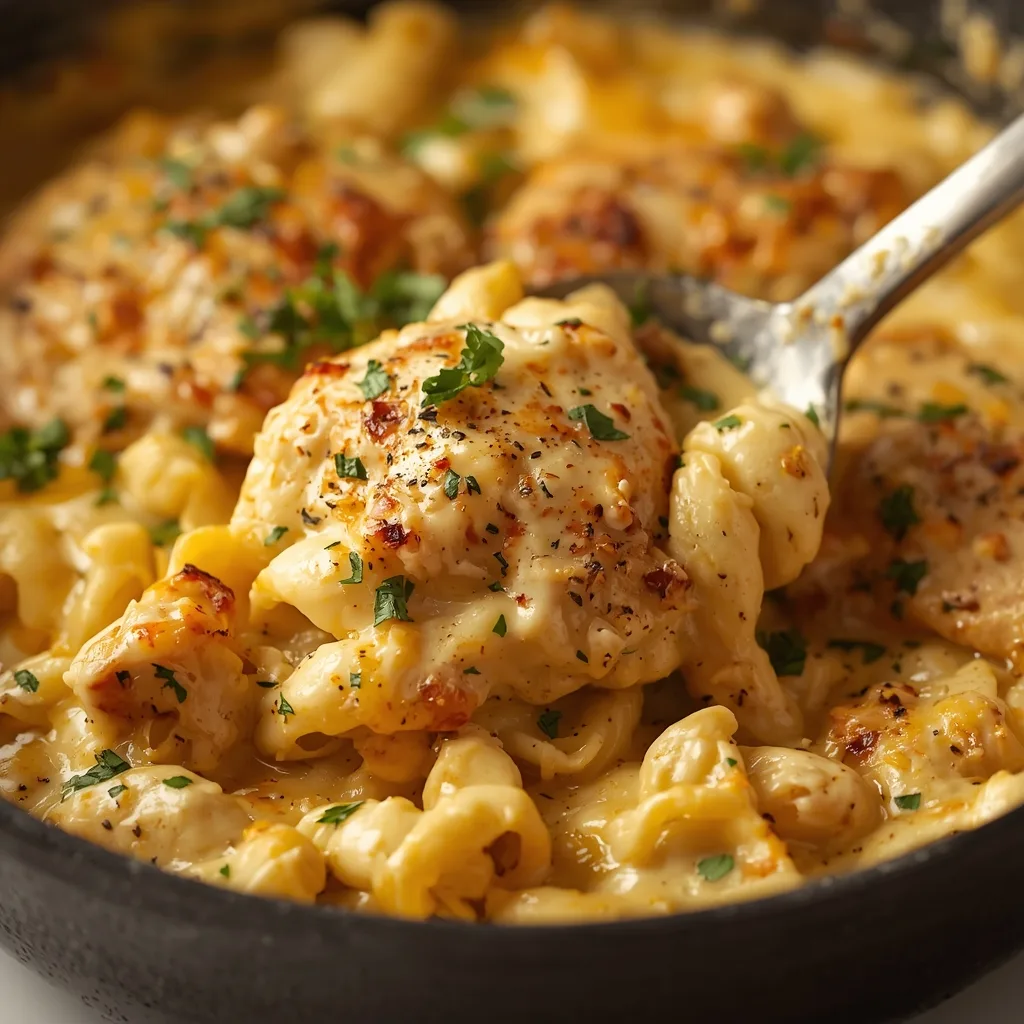 What it tastes like: imagine smooth, velvety cream wrapped around tender pasta, with bursts of roasted garlic, a hit of Parmesan tang, and little pockets of golden-browned cheese. The chicken adds savory heft and that roast-scent depth that makes everyone quiet for a minute while they savor the first bite.