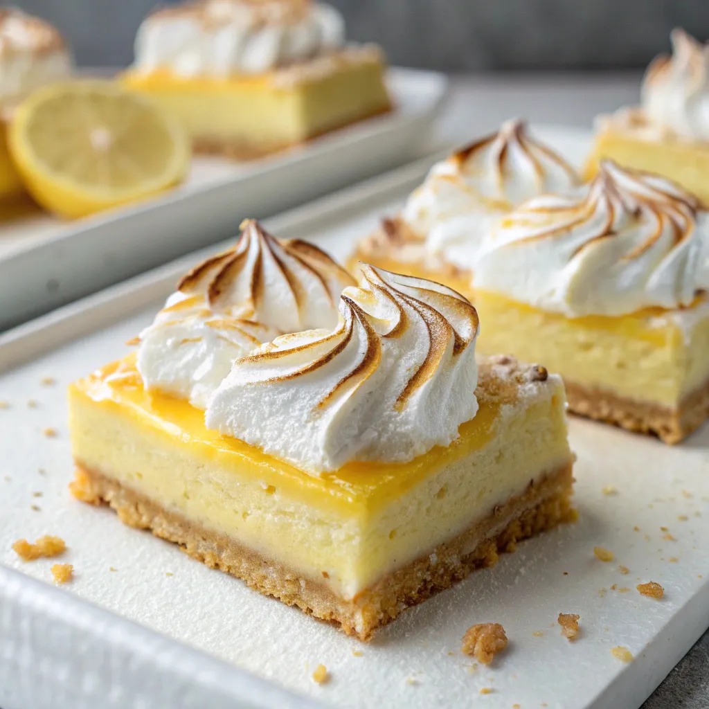 Lemon Greek Yogurt Cheesecake Bars with Toasted Meringue Topping