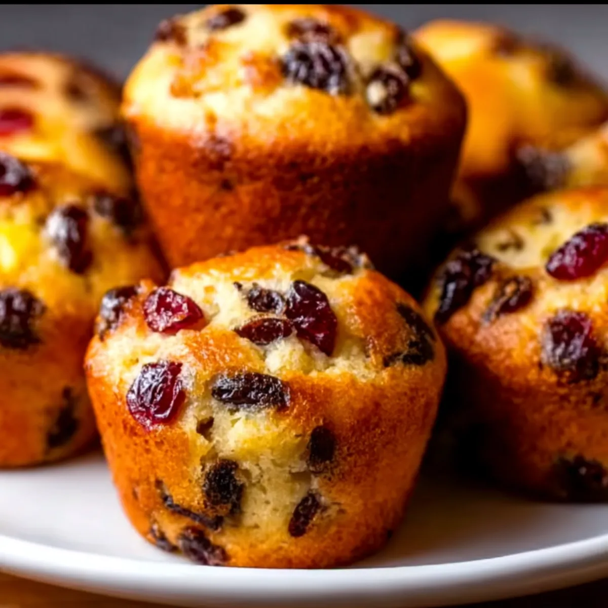 Soft, lightly spiced muffins with bursts of sweet dried fruit, a buttery vanilla base, and just enough warmth from cinnamon to make them feel festive—but not overpowering.