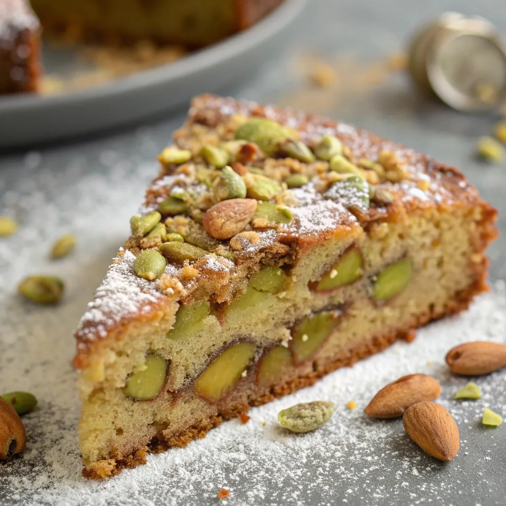 Imagine the buttery crumb of a pound cake, kissed with almond essence, studded with pistachios, and crowned with a sweet almond glaze. Every bite has a gentle crunch and a fragrant nuttiness that lingers like a warm memory.