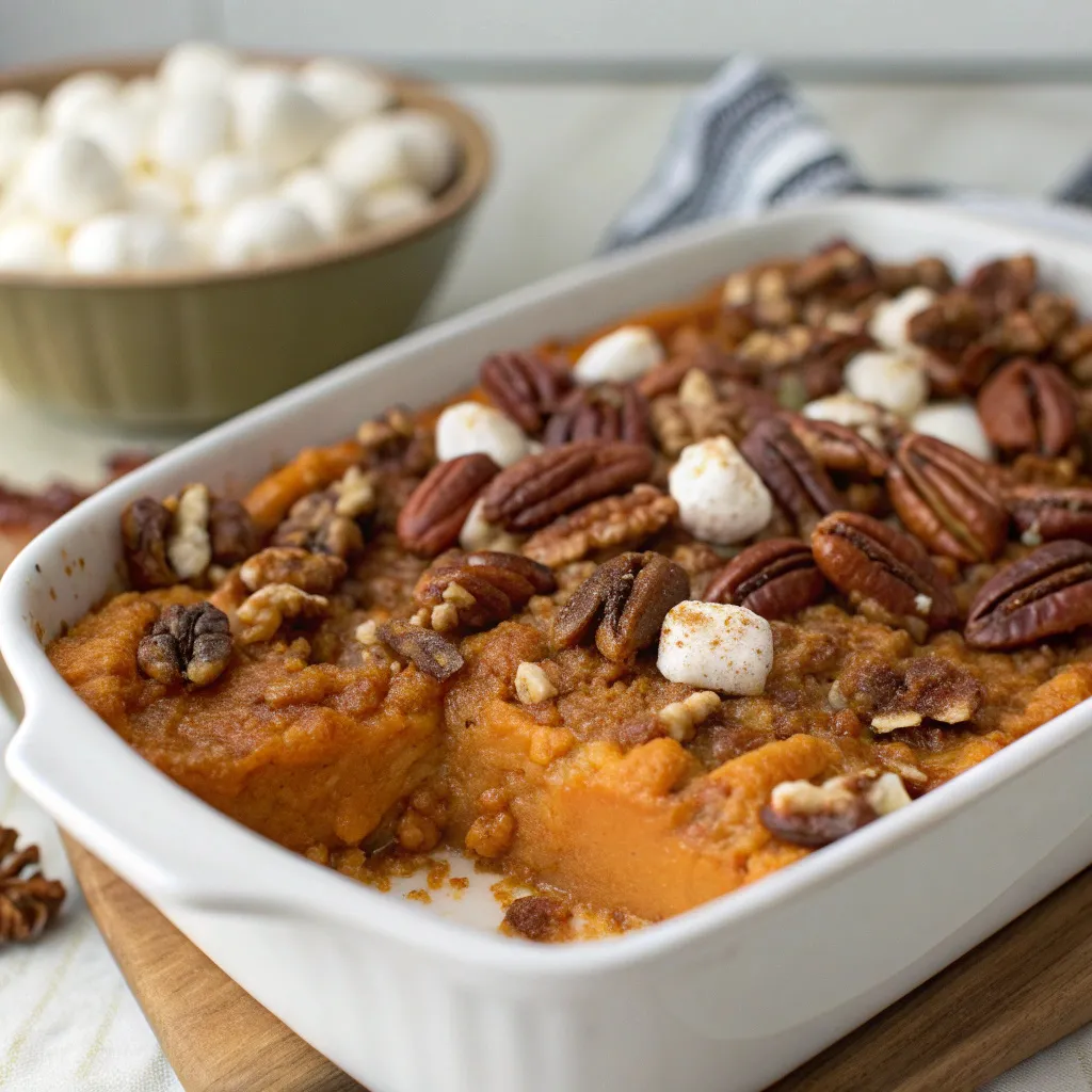 This casserole became legendary thanks to Ruth’s Chris Steak House, where it’s served alongside their world-famous steaks. It’s now a holiday staple across America. Sweet potatoes themselves have been a Southern favorite for centuries, making this dish both nostalgic and timeless.