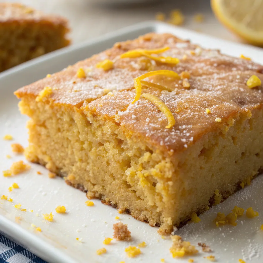 This cake is a cross between Southern-style cornbread and a soft lemon loaf—moist, tender, and slightly crumbly in the best way.